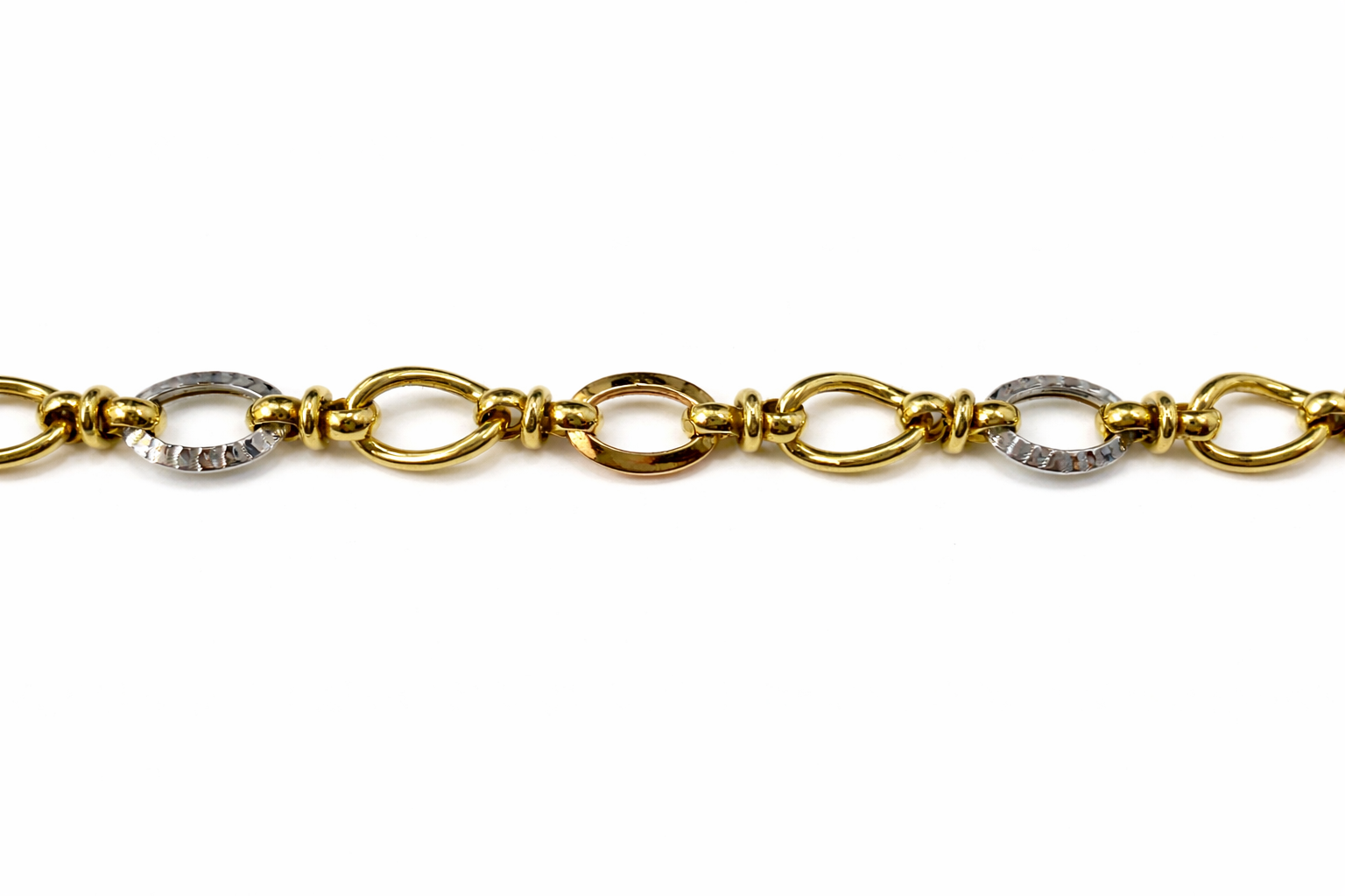 14K TRI COLOR OPEN ROUND SEMI HOLLOW LINK BRACELET
