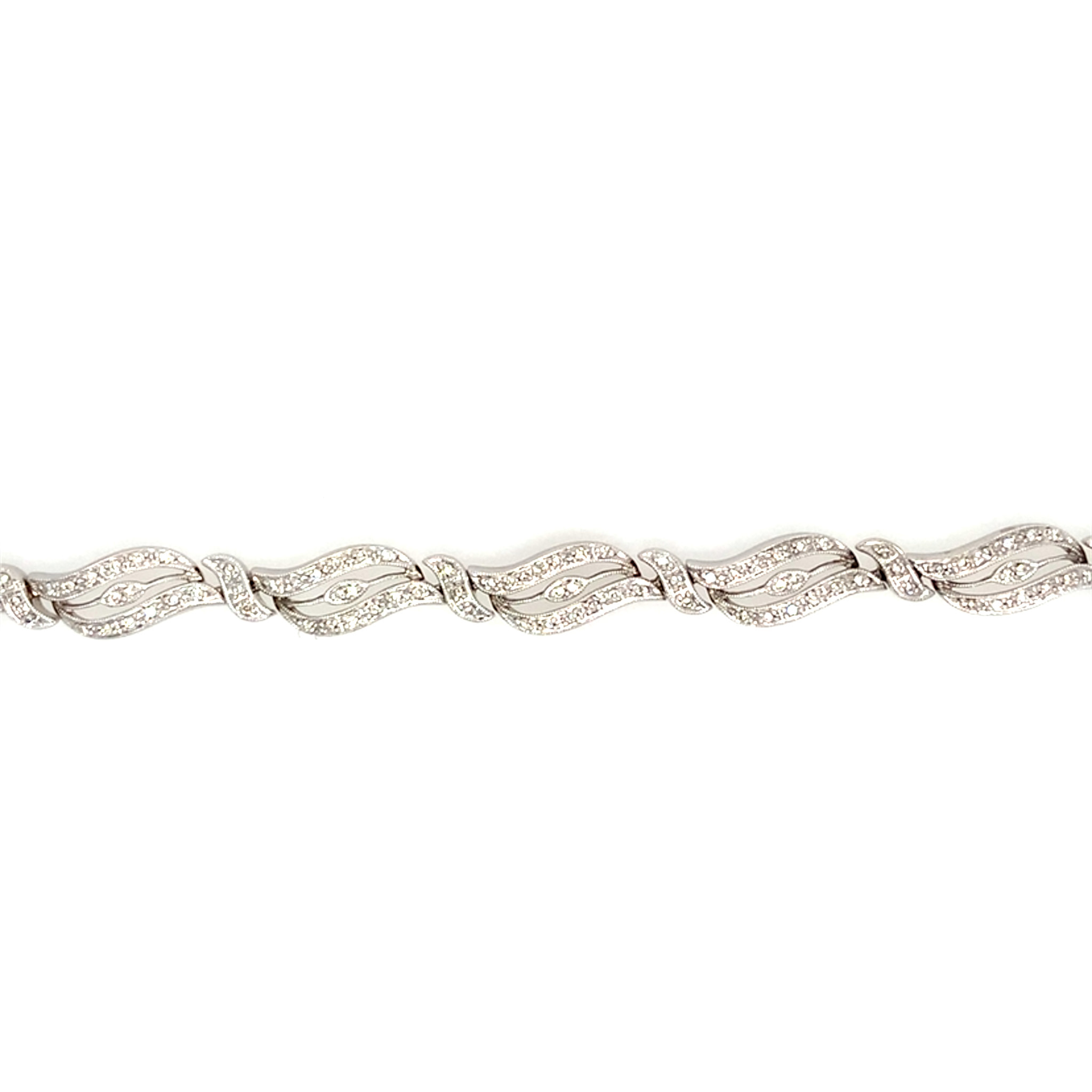 20476 14K WHITE GOLD DIAMOND WAVED TIGER EYE DESIGN LADIES BRACELET