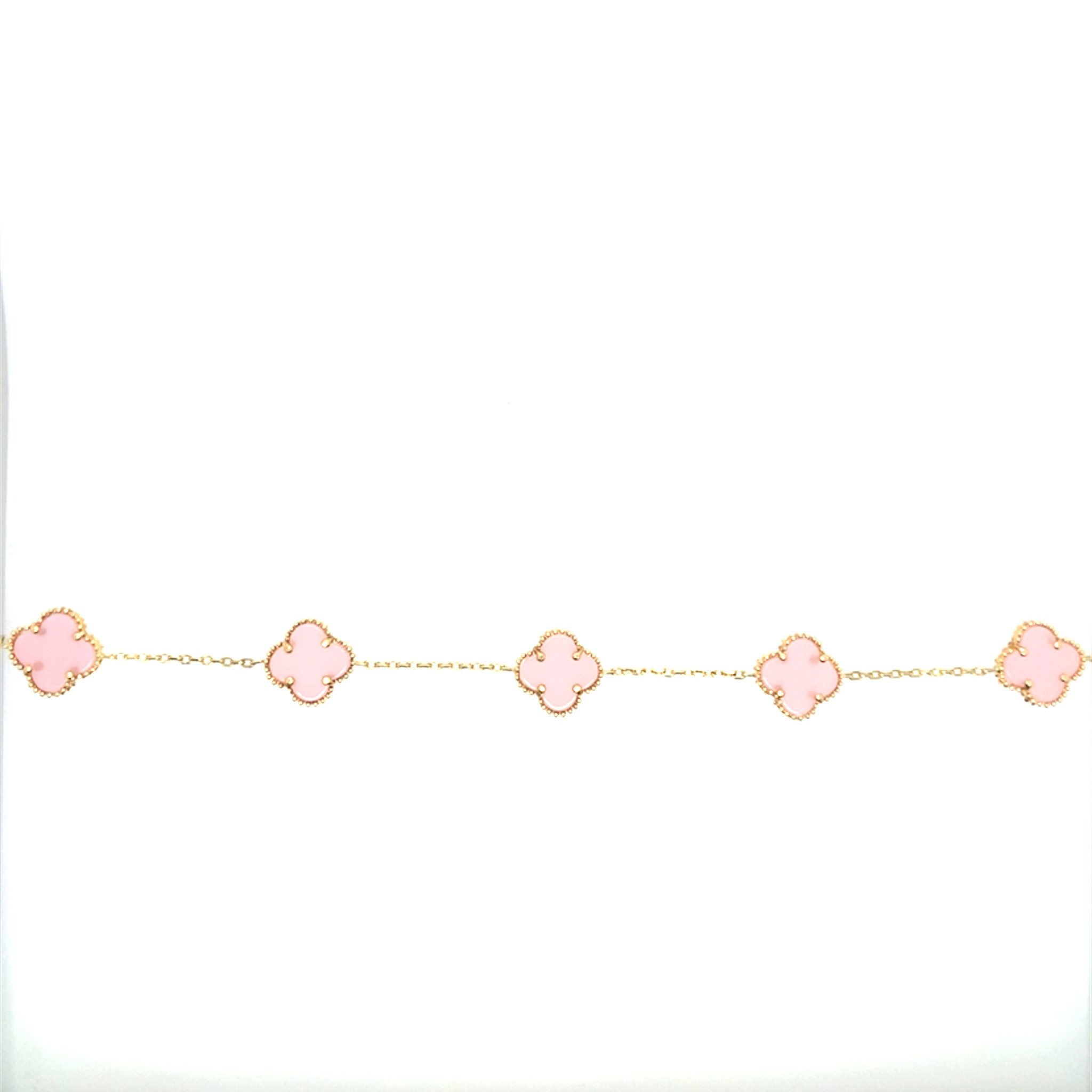 14K YELLOW GOLD 11.5MM 5 TRANSPARENT PINK CLOVER BRACELET
