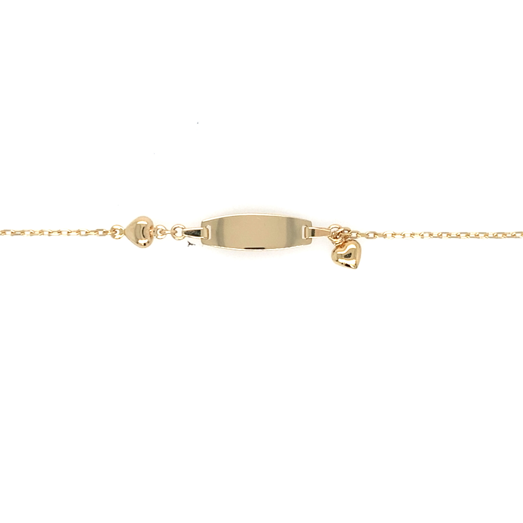 20496 14K YELLOW GOLD HIGH POLISH PUFFY HEART HANGING NAME ID BABY BRACELET