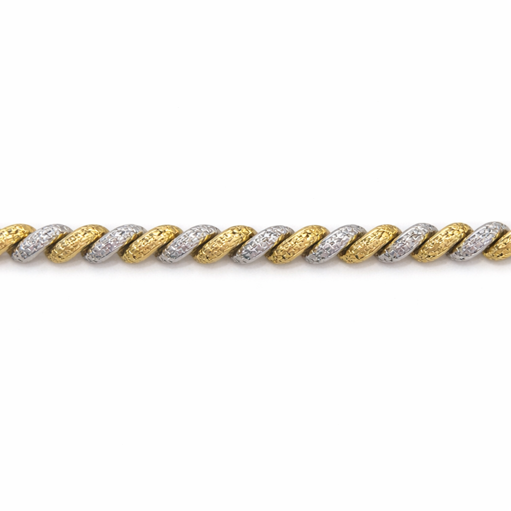 20516 14K TWO TONE DIAMOND CUT MACARONI BRACELET 8.3MM
