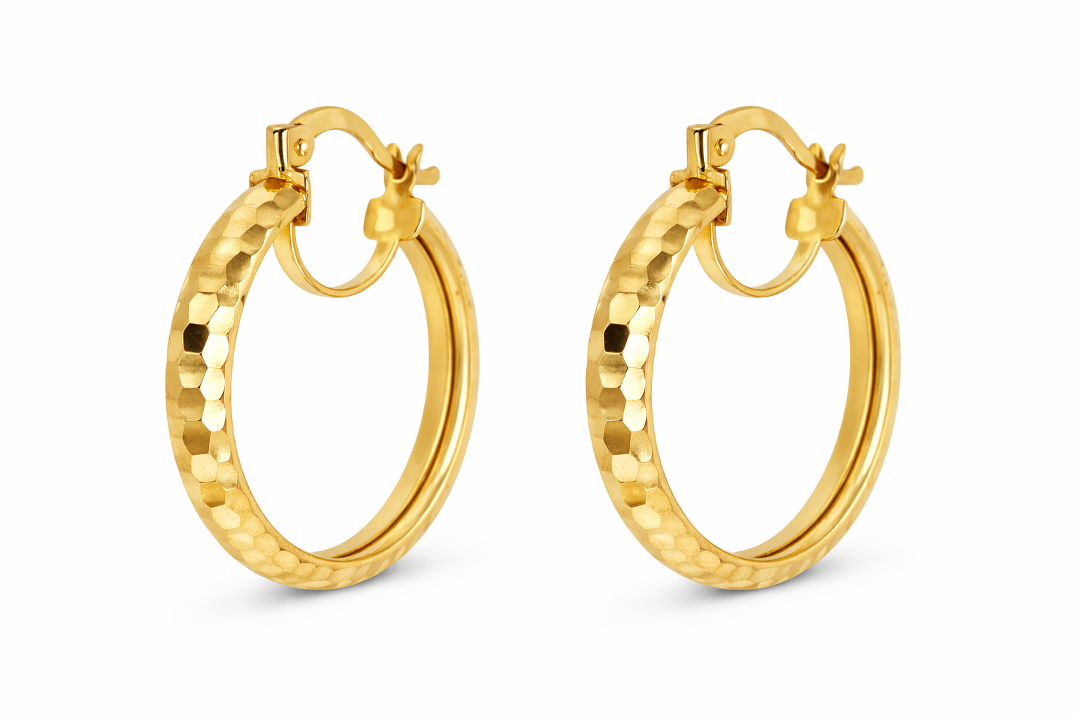 30300 14K YELLOW GOLD HAMMERED DESIGN 4MM 1.25" HOOPS