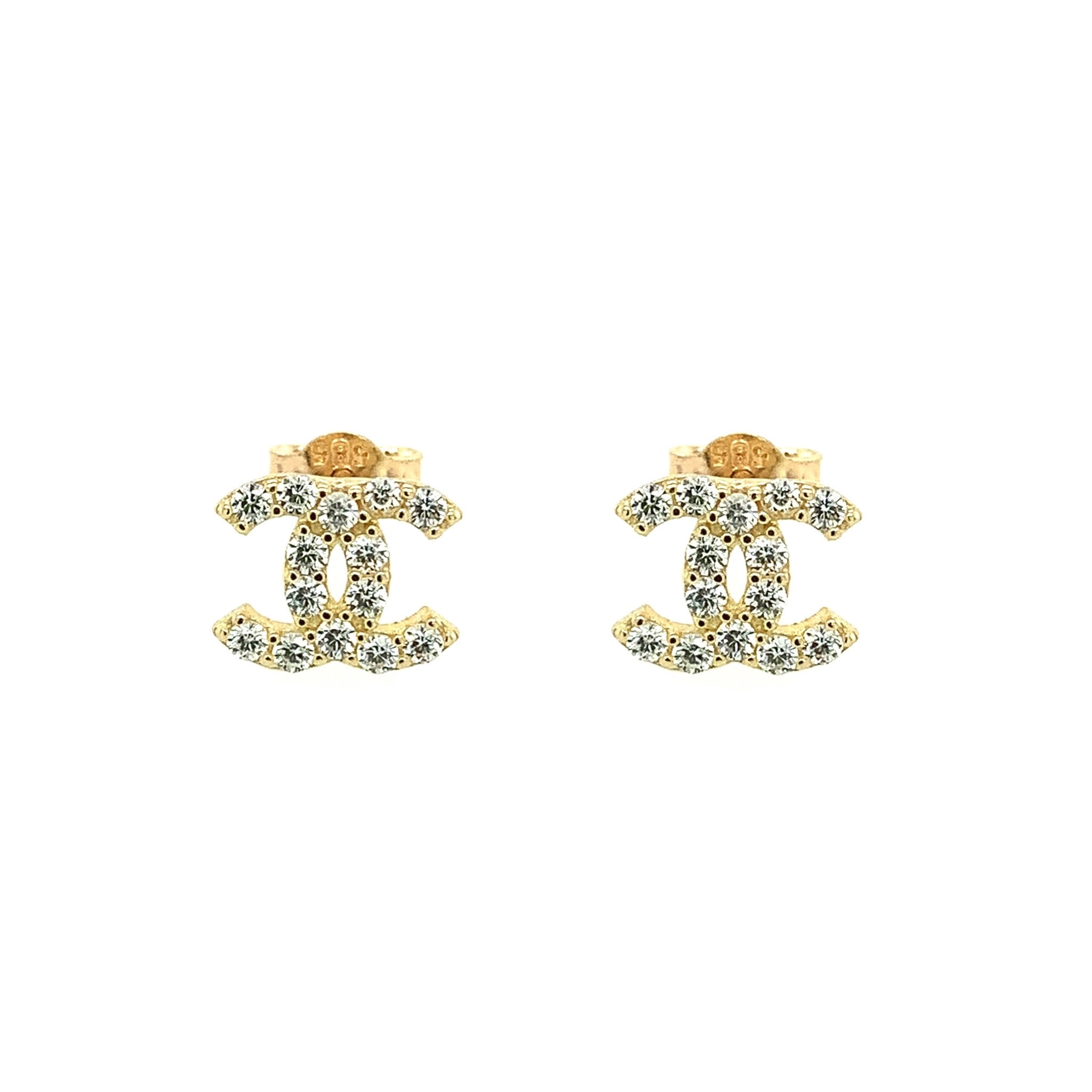 14K YELLOW GOLD 7MM CUBIC ZIRCONIA CHANEL STUDS