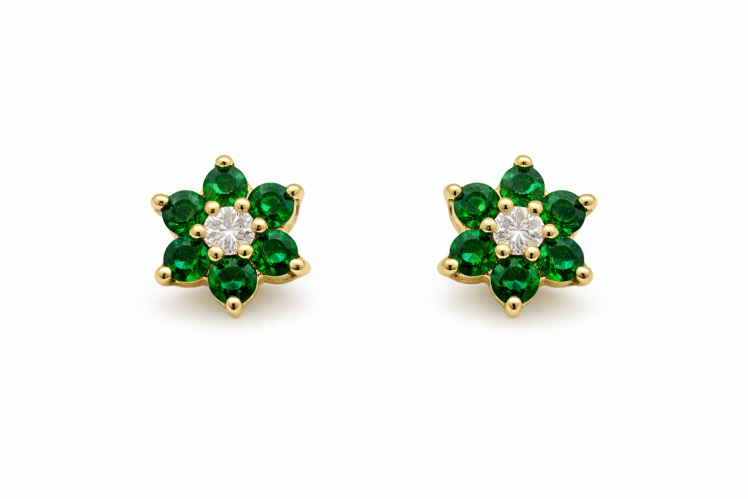 31185 14K YELLOW GOLD EMERALD FLOWER .16TCW DIAMOND STUDS