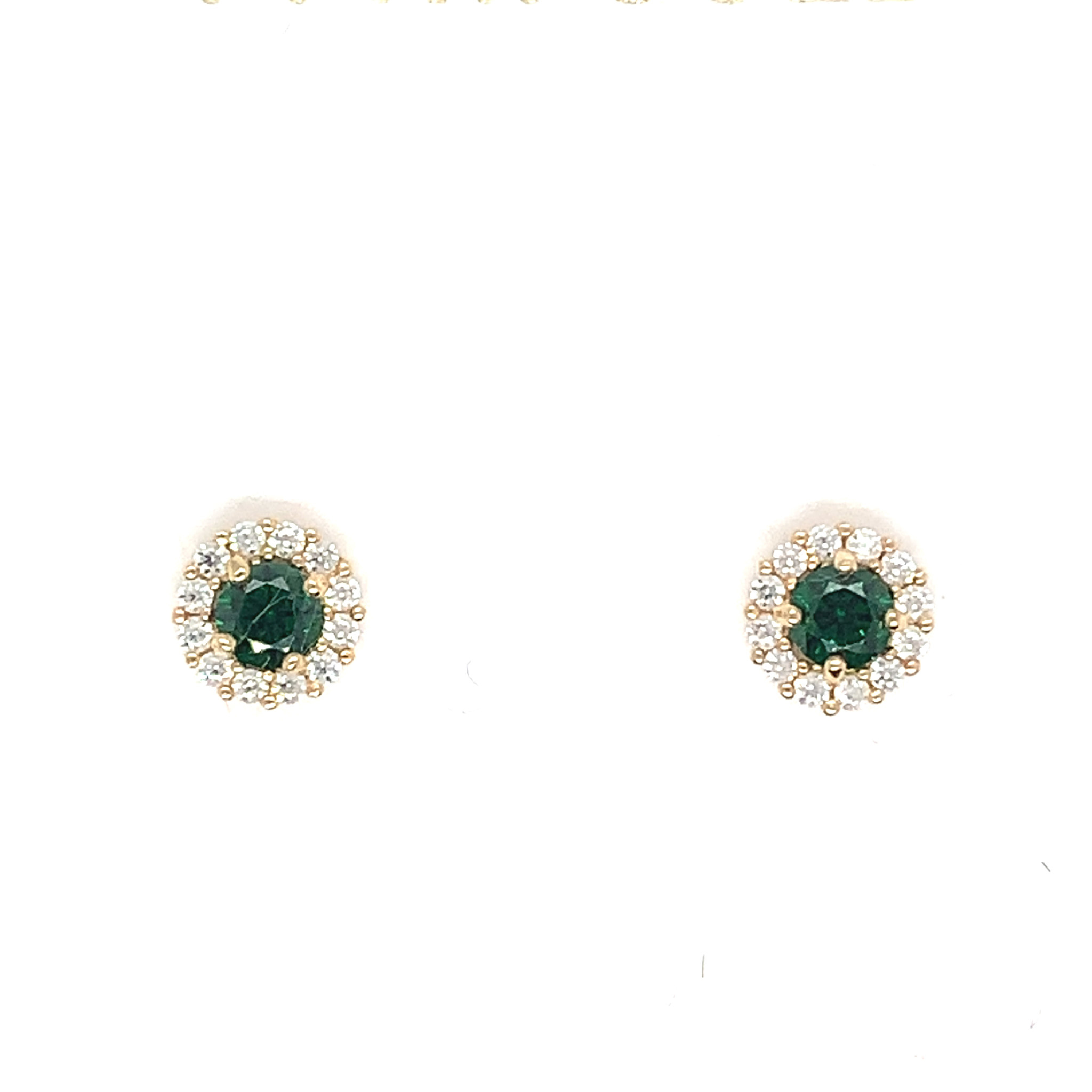 14K YELLOW GOLD MULTI COLOR CUBIC ZIRCONIA HALO SCREW BACK STUDS 6.5MM