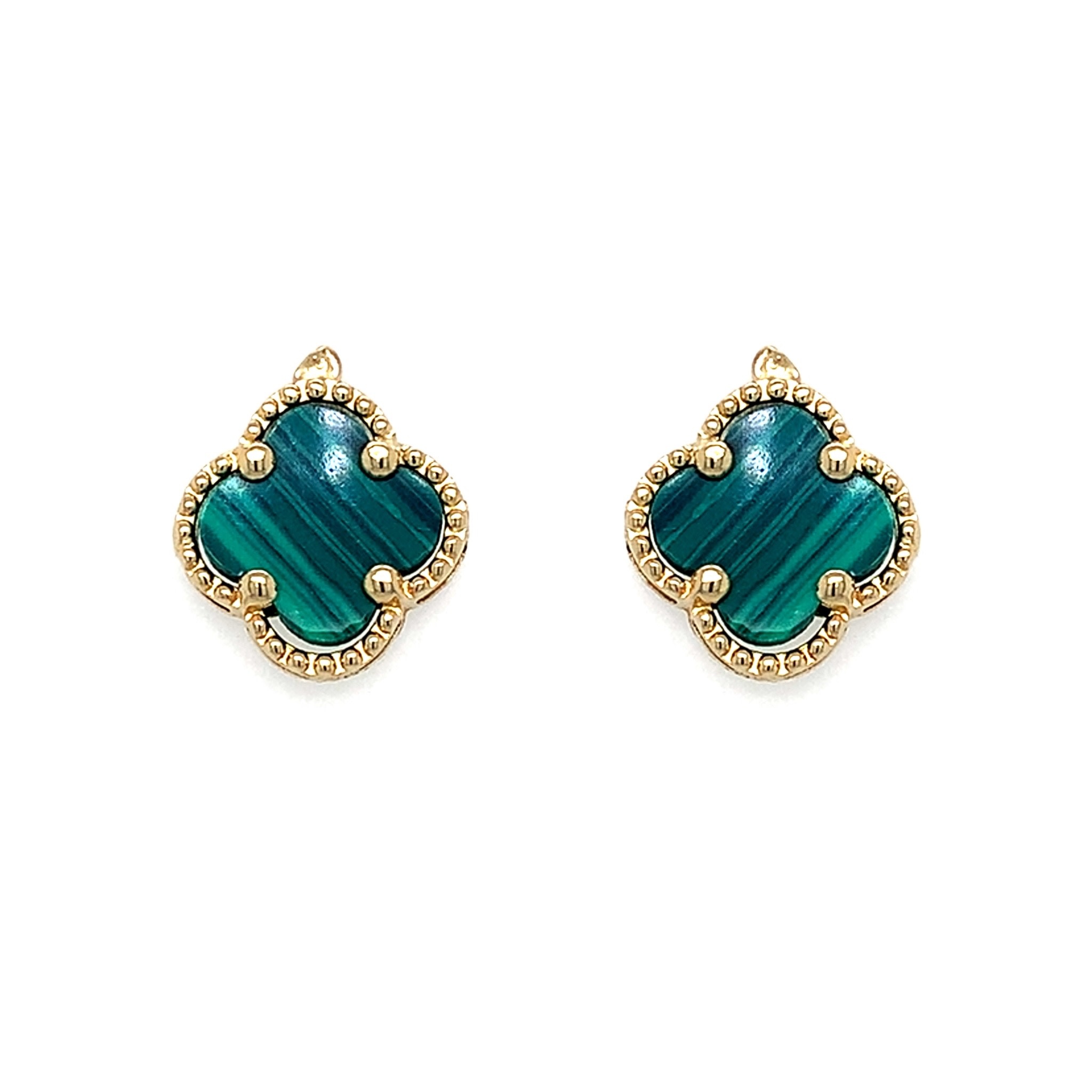 31494 14K YELLOW GOLD MALACHITE CLOVER STUDS 12MM