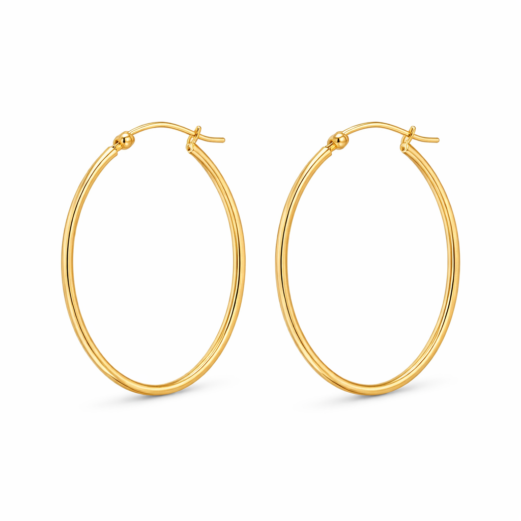 The elongated oblong shape creates a flattering silhouette that frames the face beautifully while adding a contemporary edge to a timeless style. The smooth tubular design provides a lightweight, comfortable feel, making these hoops ideal for all-day wear.