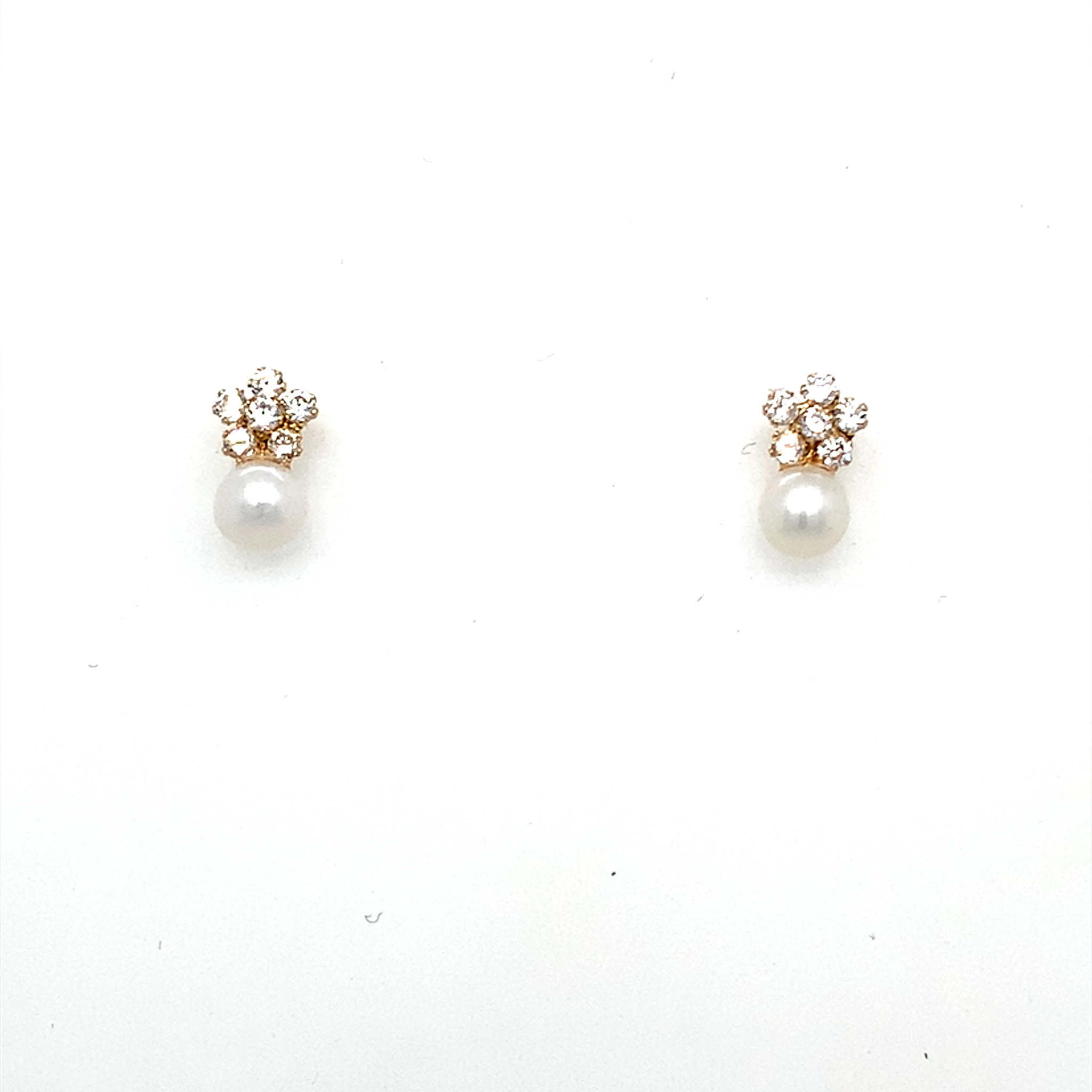 14K YELLOW GOLD CUBIC ZIRCONIA FLOWER WITH A PEARL SCREW BACK STUDS