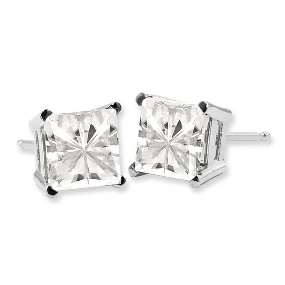 31605 14K WHITE GOLD SQUARE CUBIC ZIRCONIA 5.5MM SCREW BACK STUDS
