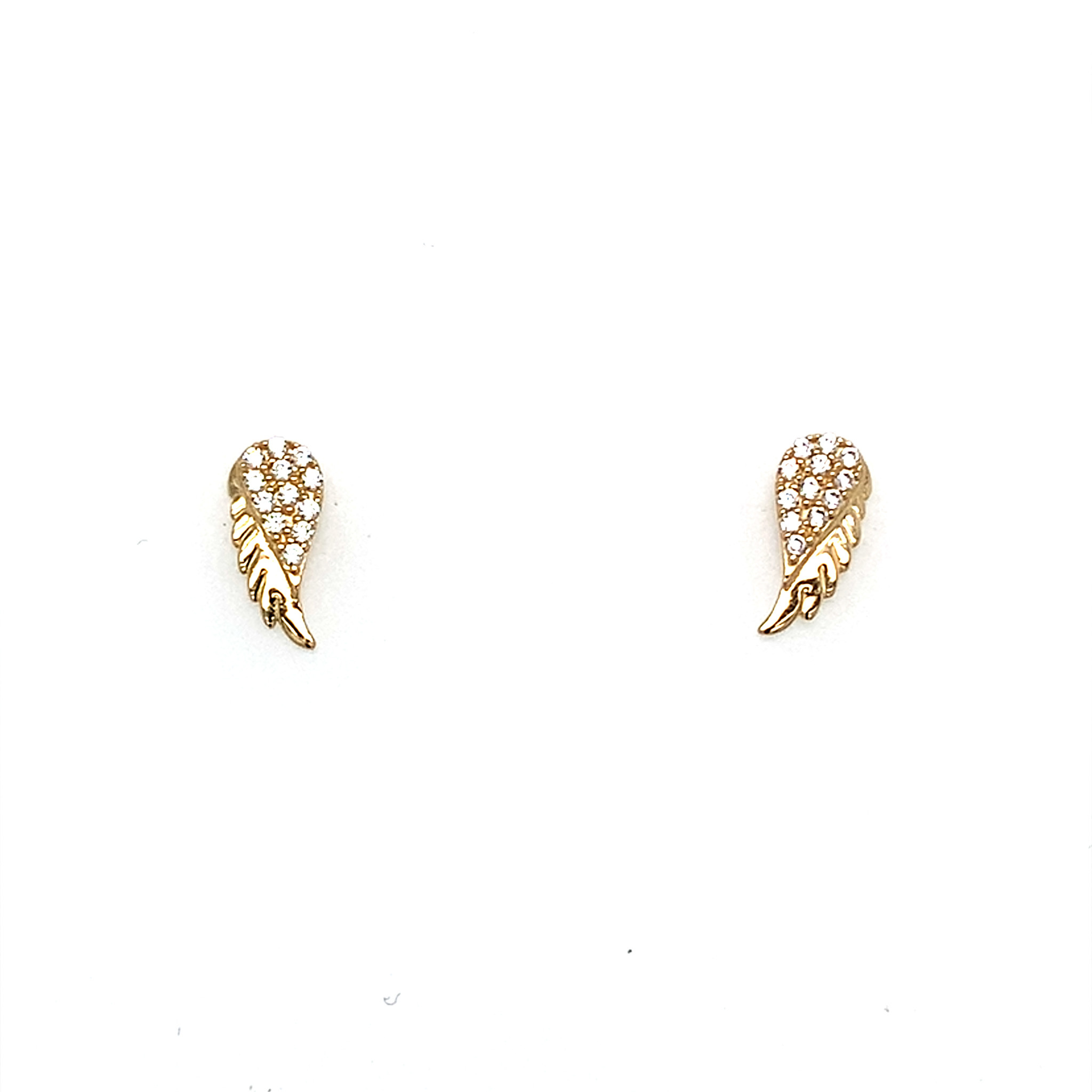 14K YELLOW GOLD CUBIC ZIRCONIA AND HIGH POLISH ANGEL WINGS SCREW BACK STUDS