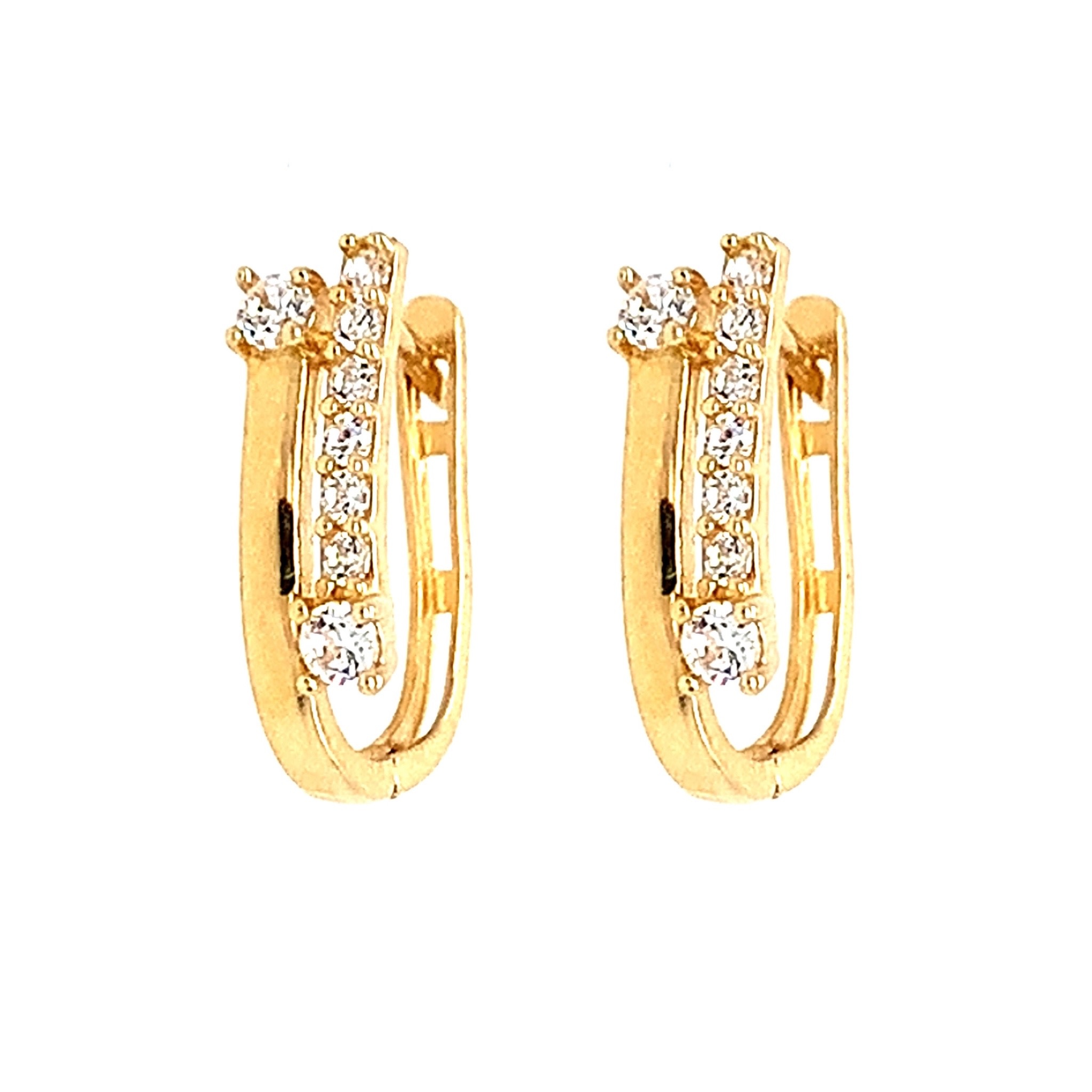 14K YELLOW GOLD CUBIC ZIRCONIA AND HIGH POLISH FINISH BYPASS EARRINGS