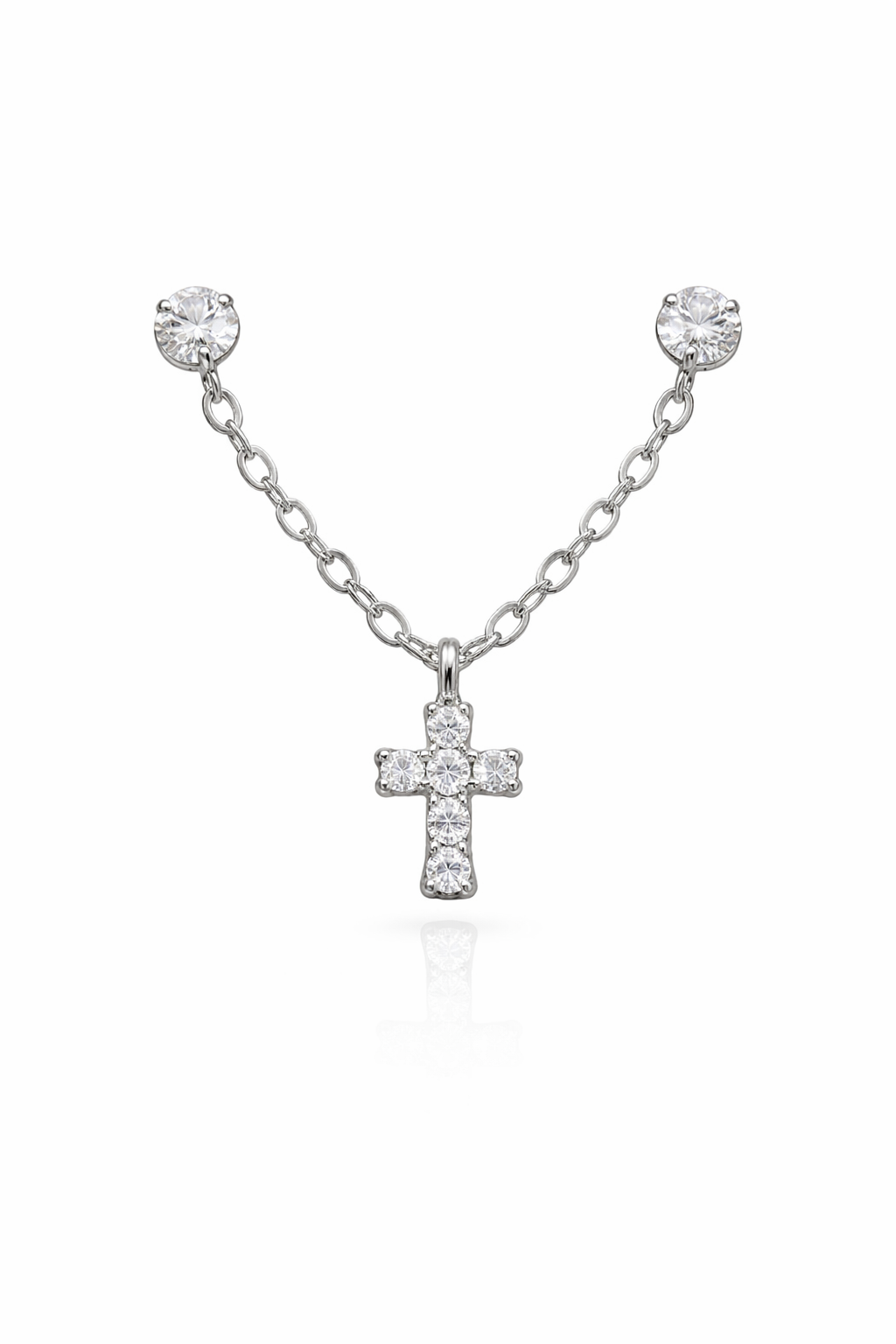 31635 14K WHITE GOLD CUBIC ZIRCONIA DOUBLE STUD CROSS HANGING EARRINGS