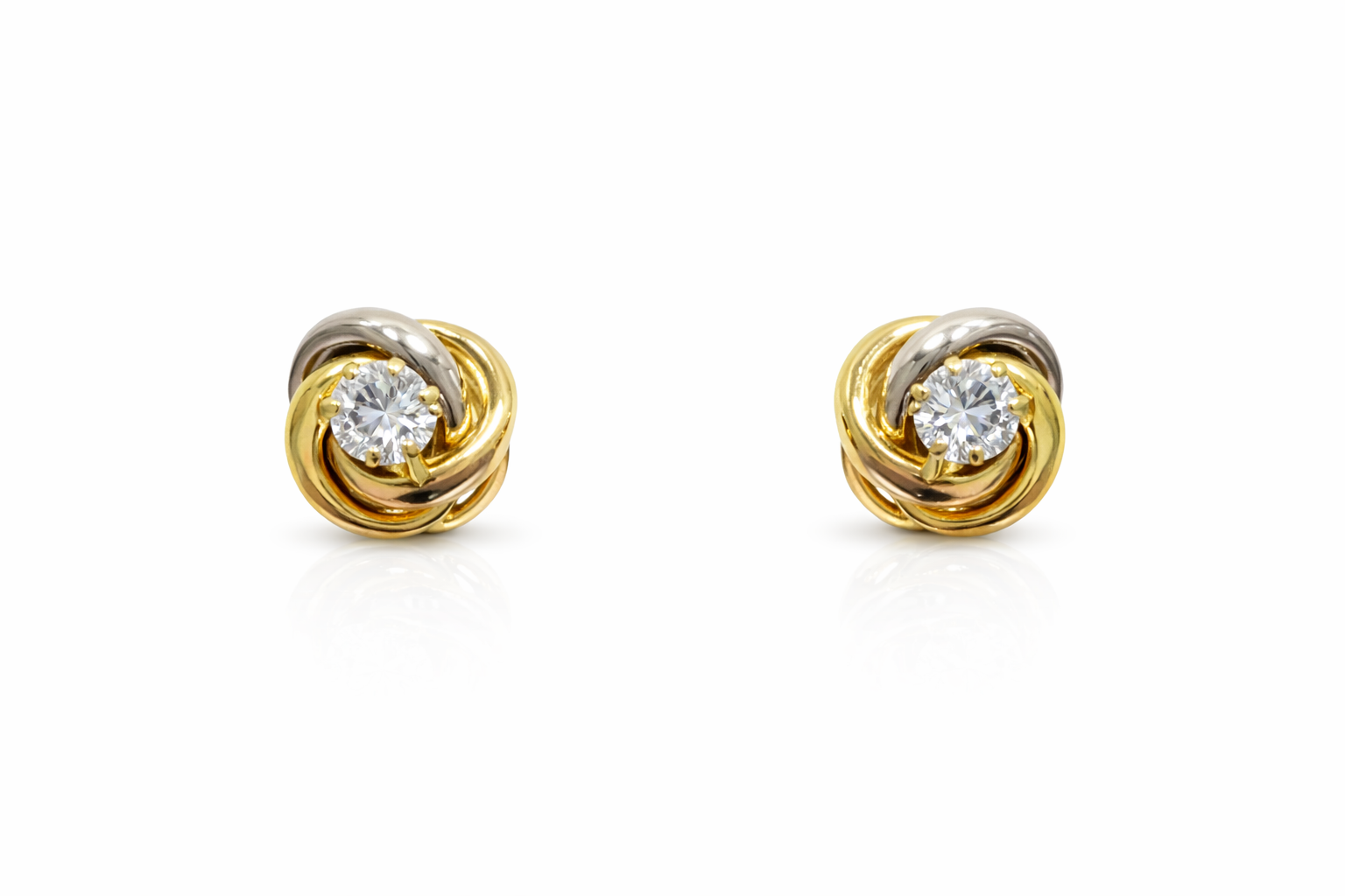 14K TRI COLOR CUBIC ZIRCONIA LOVE KNOT 6MM PUSH BACK STUDS