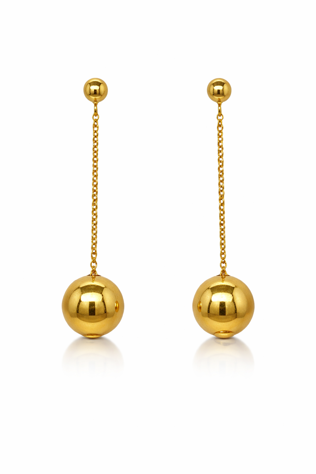 14K YELLOW GOLD HANGING CHAIN DROP 10MM BALL STUDS
