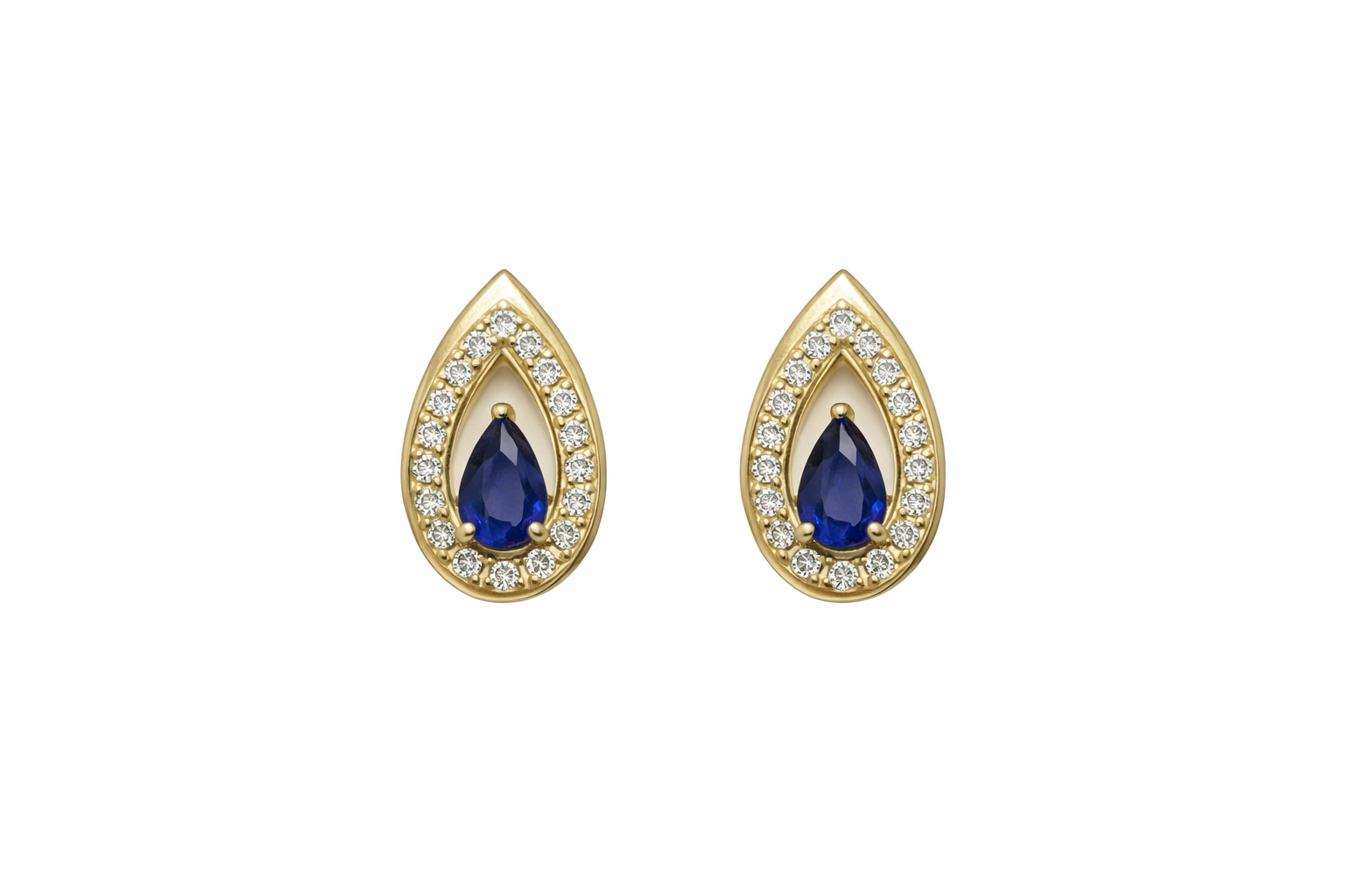 31661 10K YELLOW GOLD .12CTW DIAMOND PEAR SHAPE SAPPHIRE CUT OUT HALO SCREWBACKS STUDS