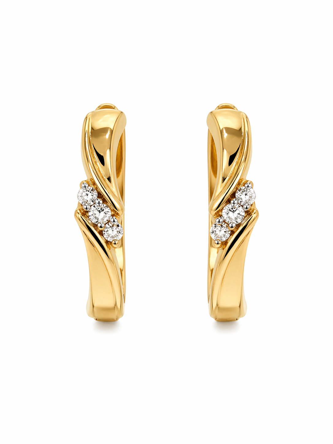31698 14K YELLOW GOLD THIN HUGGIES WITH 3 CUBIC ZIRCONIA CENETER