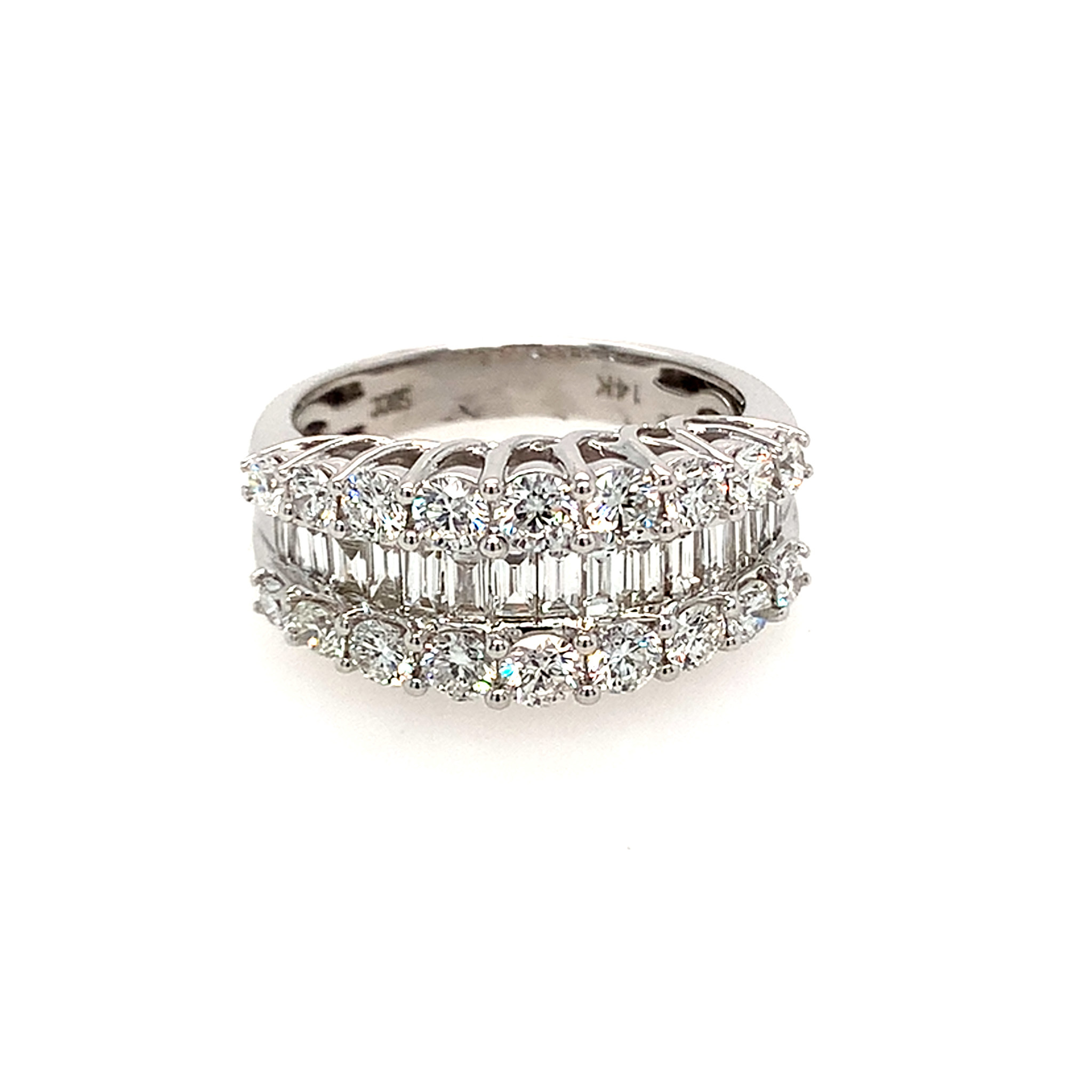 40486 14K WHITE GOLD 2CT DIAMOND BAGUETTE CENTER WITH ROUND DIAMOND BORDER RING