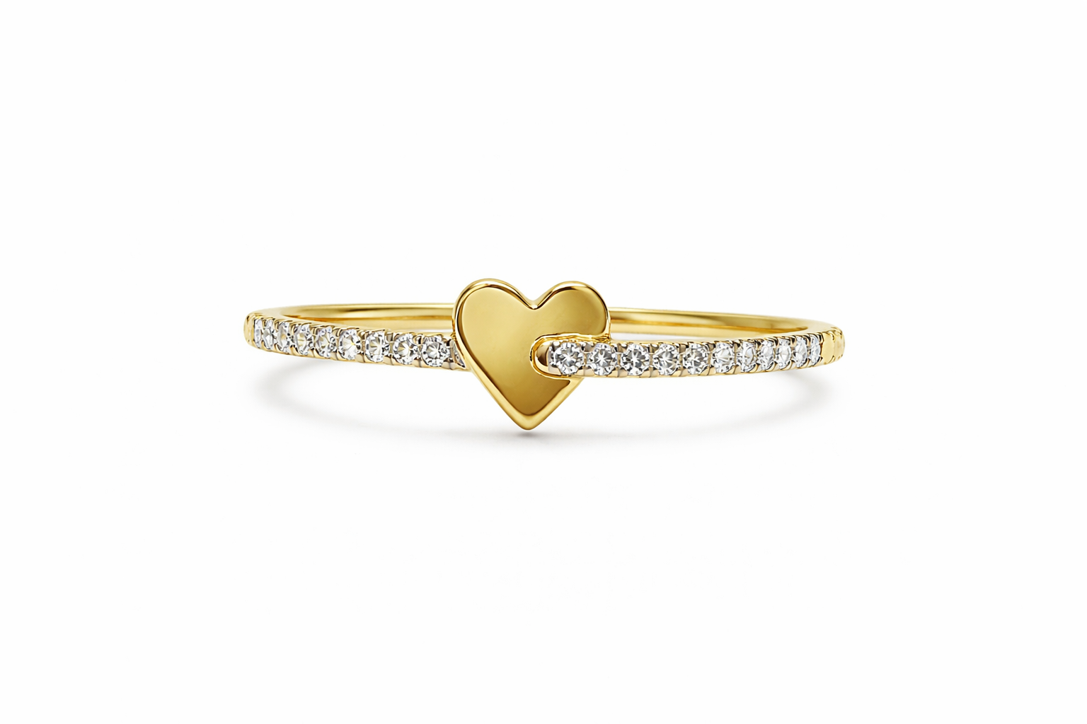 40501 10K YELLOW GOLD .13CTW DIAMOND HIGH POLISH PETITE HEART LADIES RING