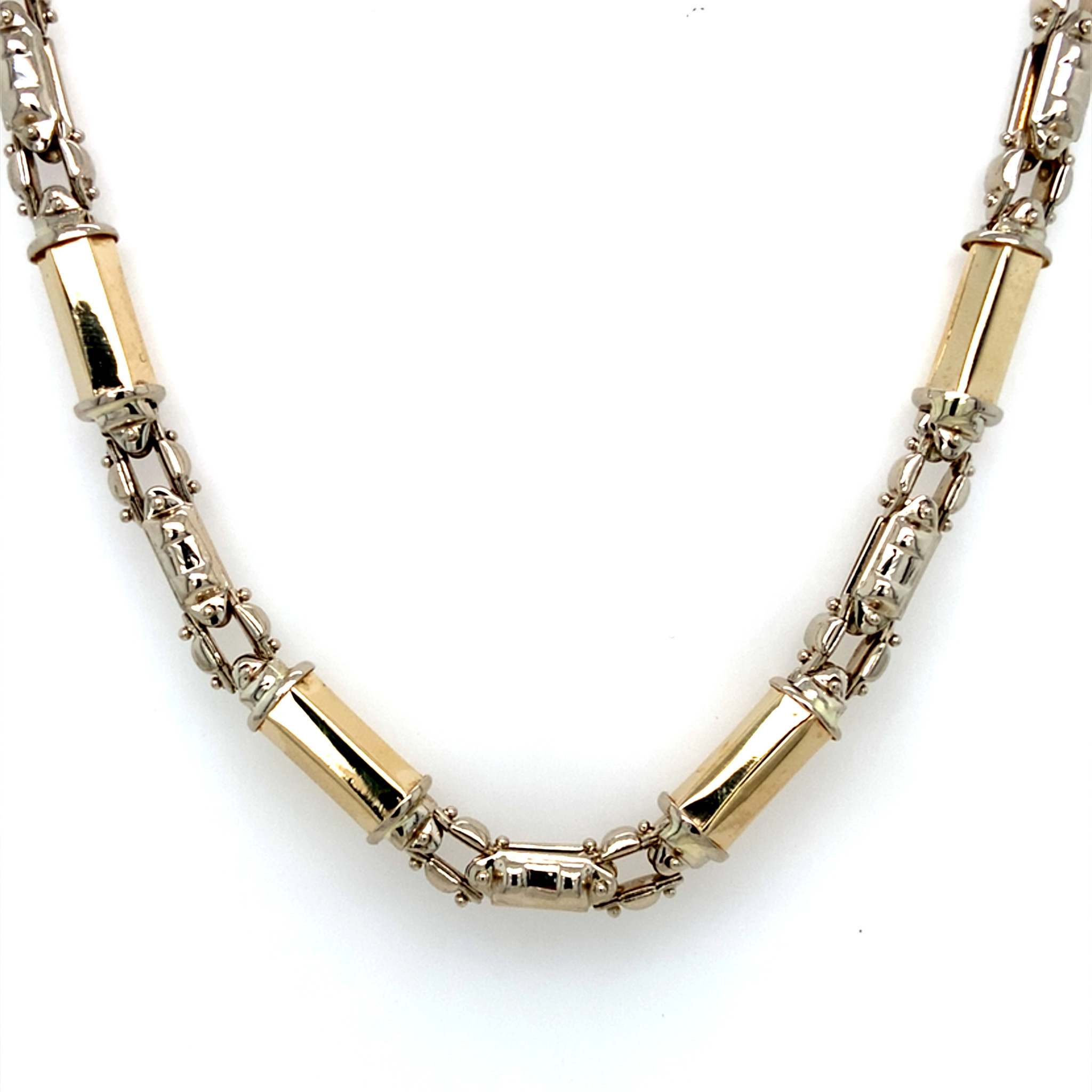 50475 14K GOLD 24'' TWO TONE BARREL FANCY MECHANIC LINK CHAIN