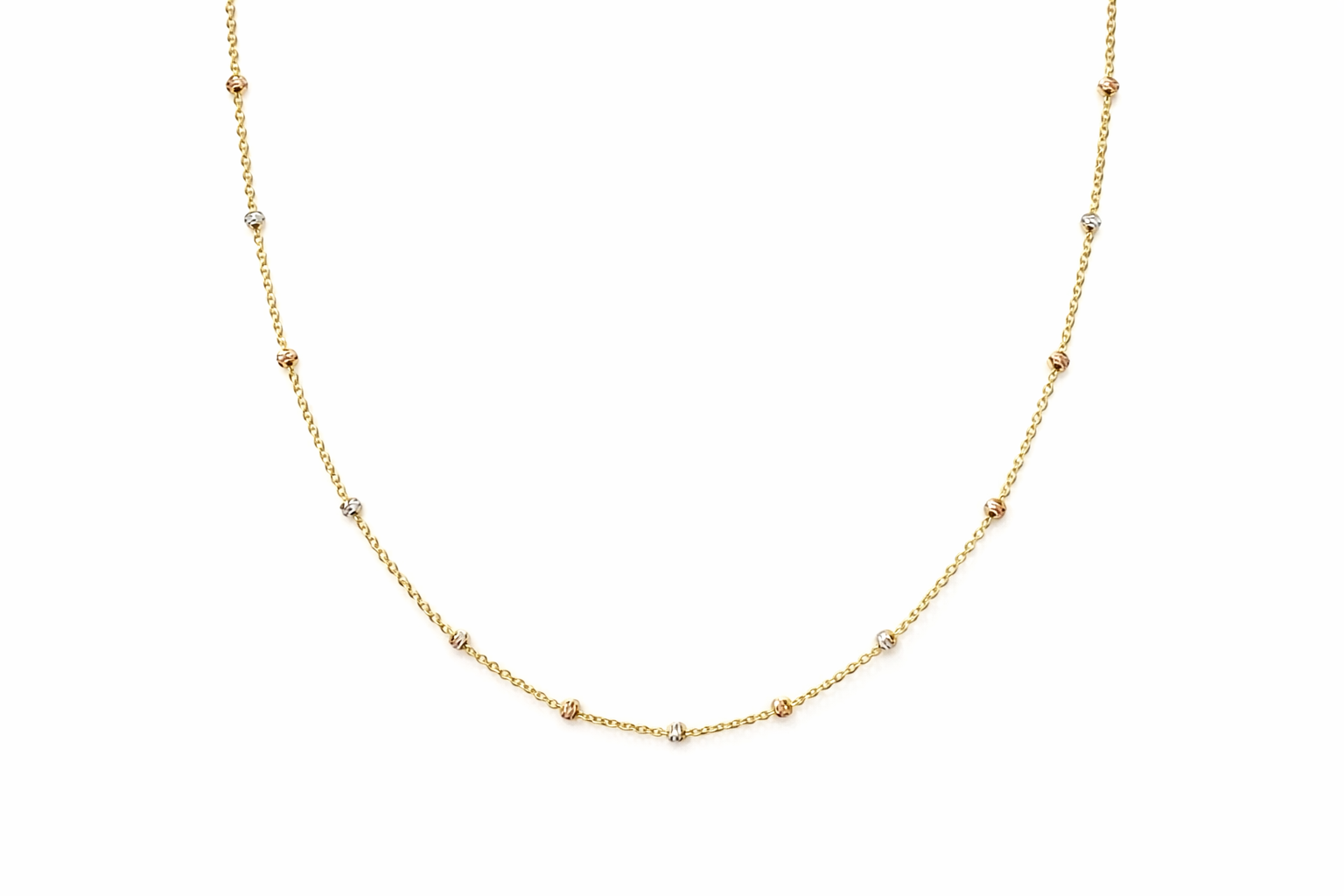 14K 16" TRI COLOR GOLD DIAMOND CUT BEAD BY THE YARD CHAIN