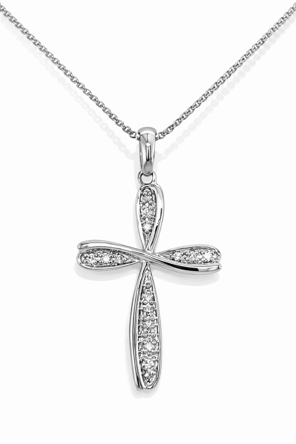 14K WHITE GOLD SWIRL DESIGN .15TCW DIAMOND CROSS PENDANT SET