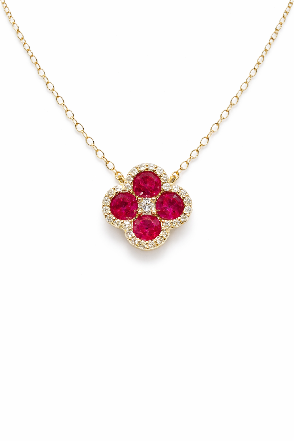 70647 14K YELLOW GOLD .15CTW DIAMOND CLOVER RUBY NECKLACE