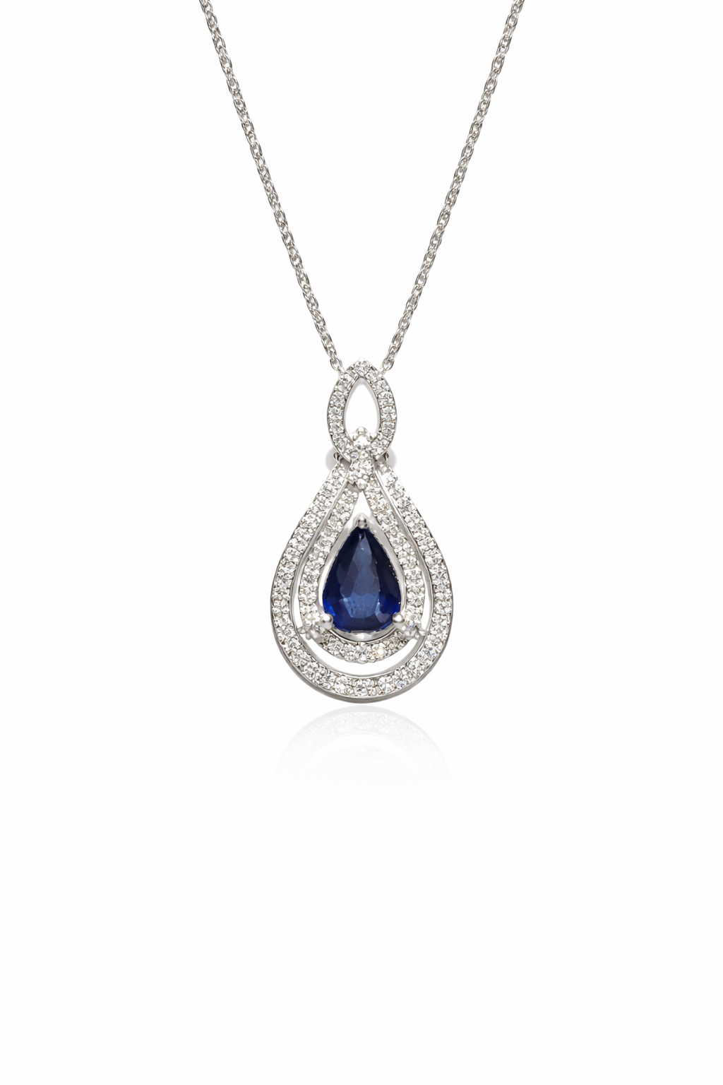 70663 14K WHITE GOLD .30 CTW DIAMOND DOUBLE HALO PEAR SHAPE SAPPHIRE PENDANT SET