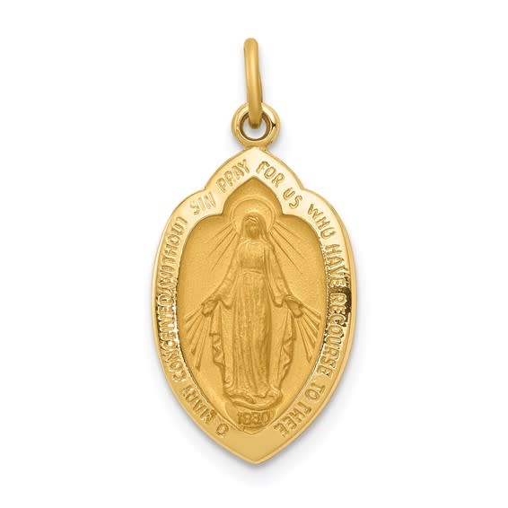 77416 14K YELLOW GOLD POLISHED AND SATIN MIRACULOUS OVAL SHEILD MEDAL 14X8MM