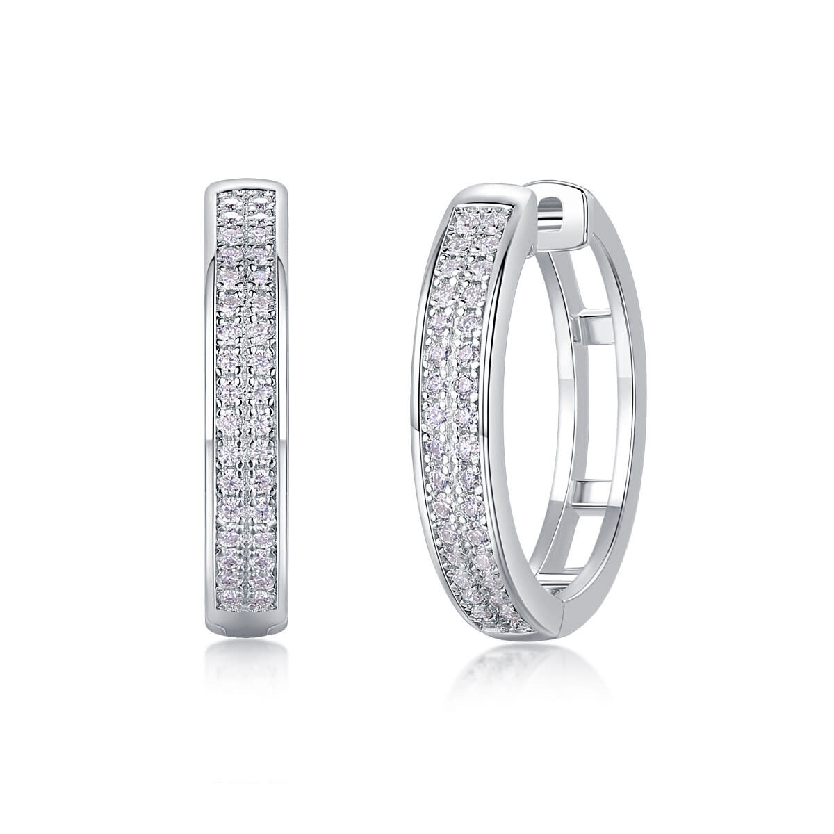 14K WHITE GOLD CUBIC ZIRCONIA TWO ROW CHANNEL SET HOOPS
