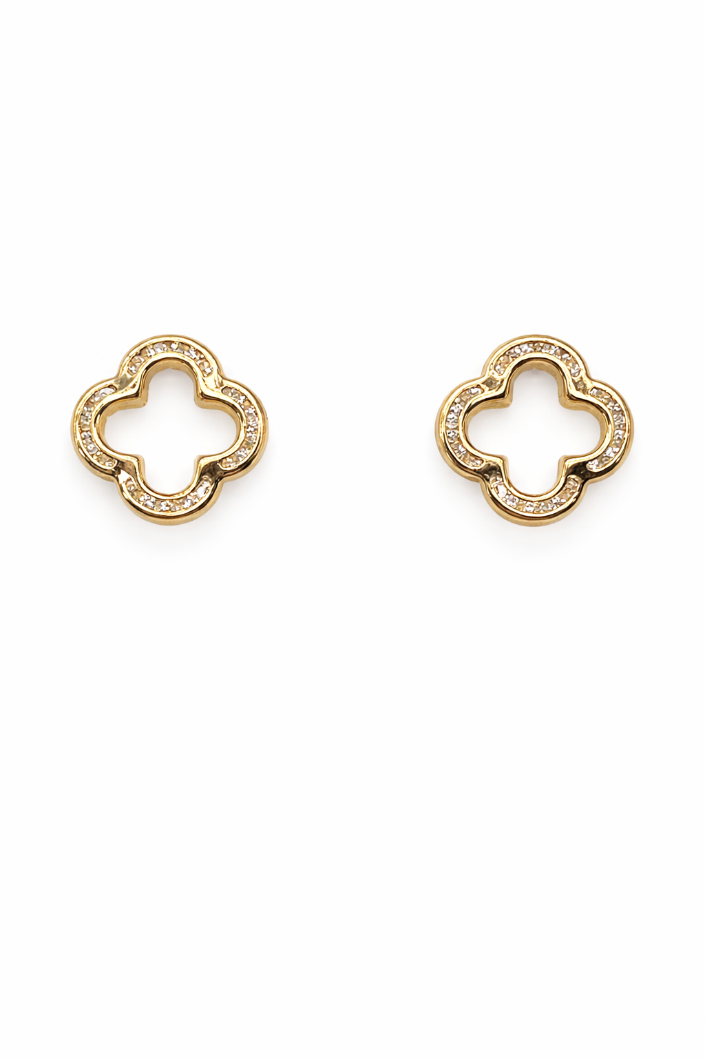 31653 14K YELLOW GOLD CUBIC ZIRCONIA CHANNEL SET HIGH POLISH OPEN CLOVER PUSH BACK STUDS