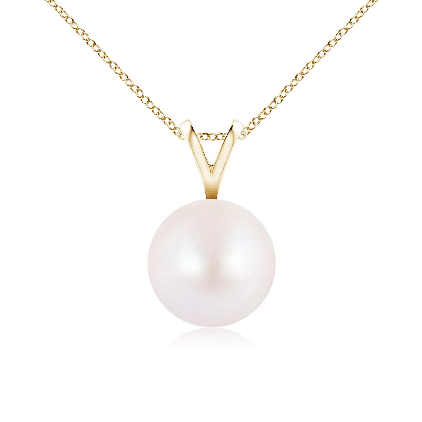 70631 14K YELLOW GOLD WHITE CULTURED PEARL 6.5MM RABBIT BAIL PENDANT SET