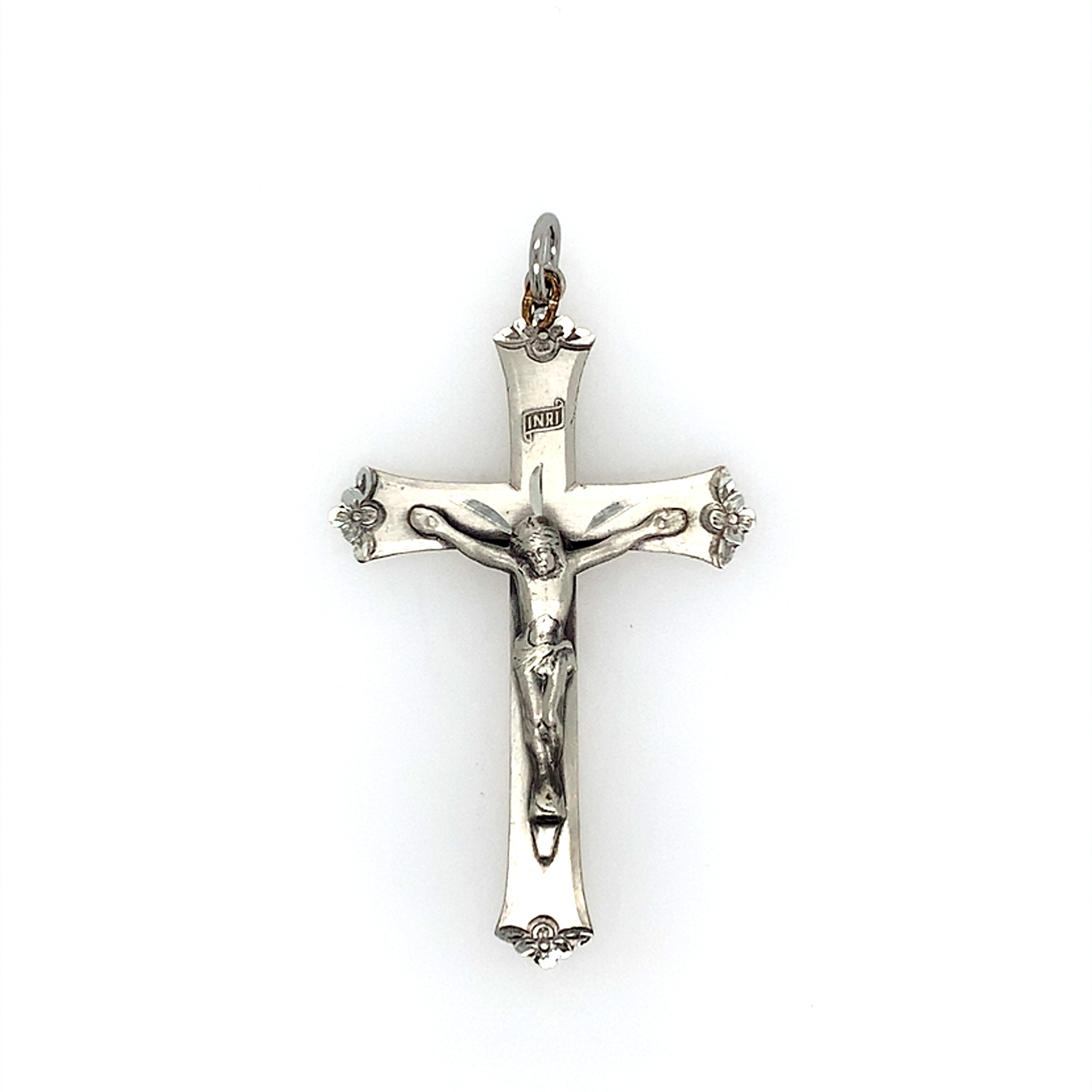 80186 STERLING SILVER SATIN FINISH CENTER DIAMOND CUT FLOWER EDGES CRUCIFIX 2''