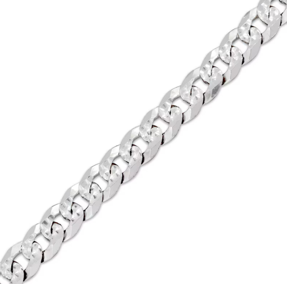 80215 STERLING SILVER 20'' DIAMOND CUT CUBAN LINK ONE SIDE CHAIN 4MM