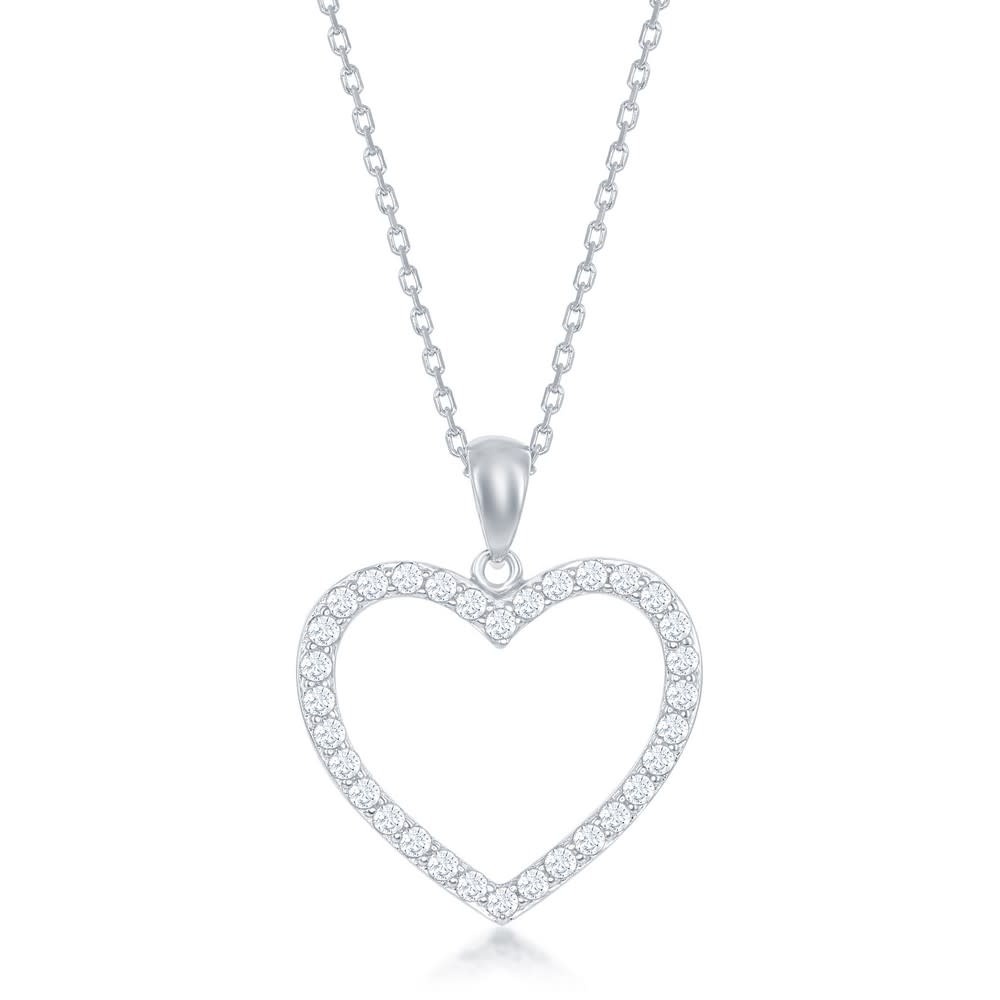 K-8185 Sterling Silver, Open Heart CZ Pendant