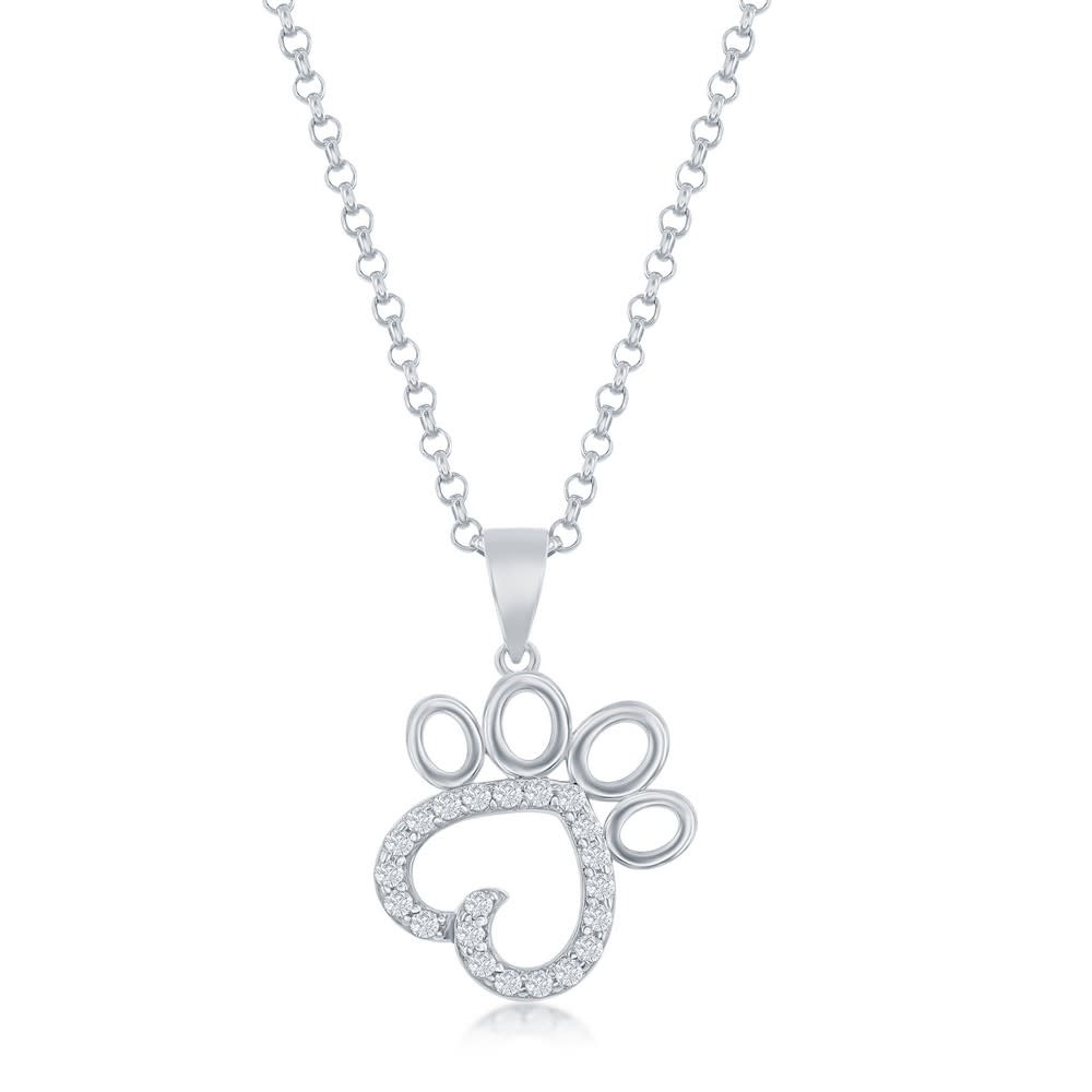 Sterling Silver Cubic Zirconia Paw Print Pendant