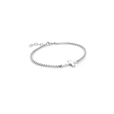 ITALGEM STAINLESS STEEL CROSS ON ROUND BOX BRACELET 7.5+1"