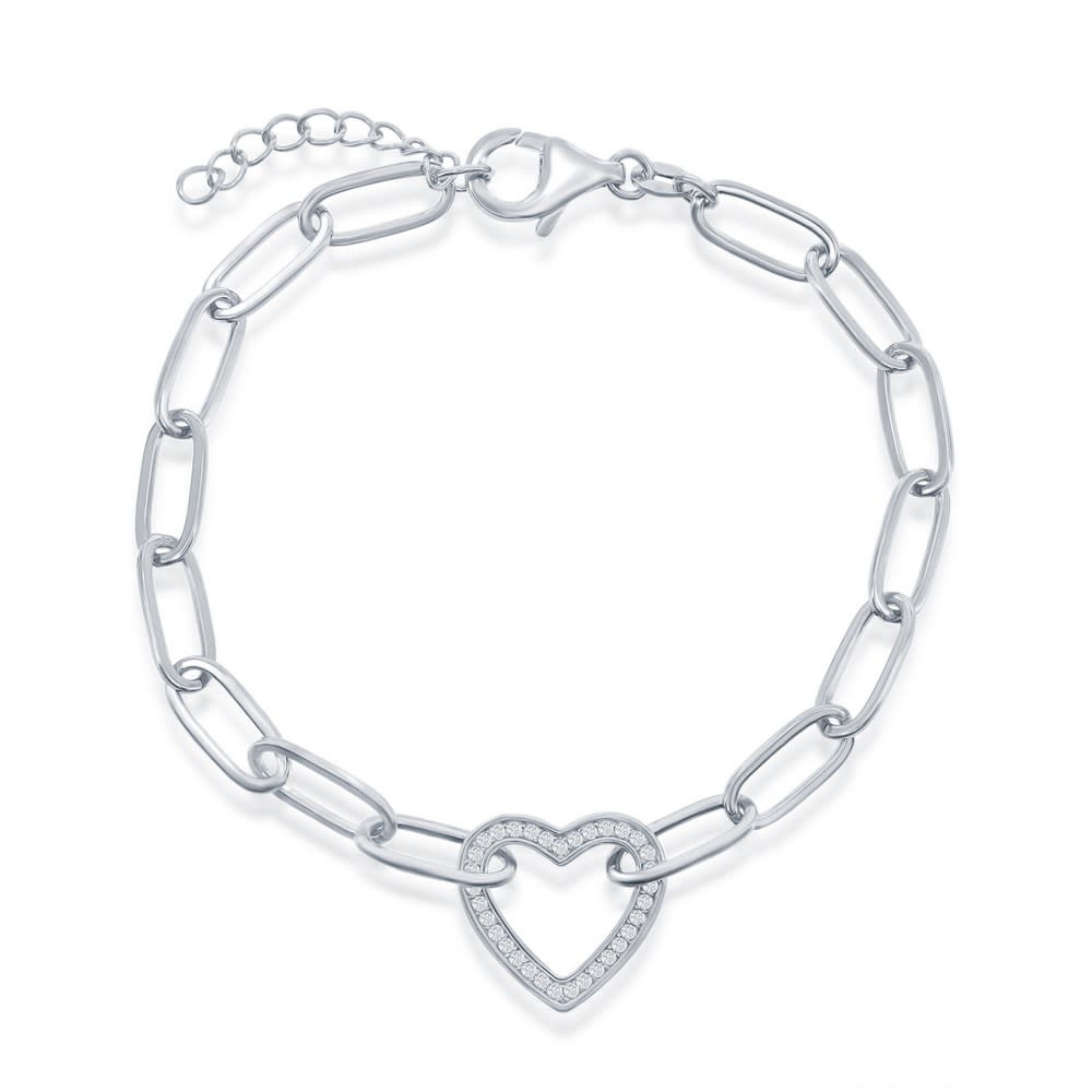 Sterling Silver Cubic Zirconia Heart Paperclip Bracelet
