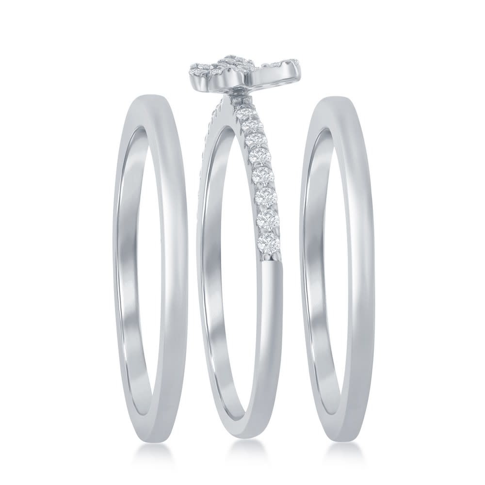 Sterling Silver 3-PC Micro Pave Cubic Zirconia Butterfly Ring